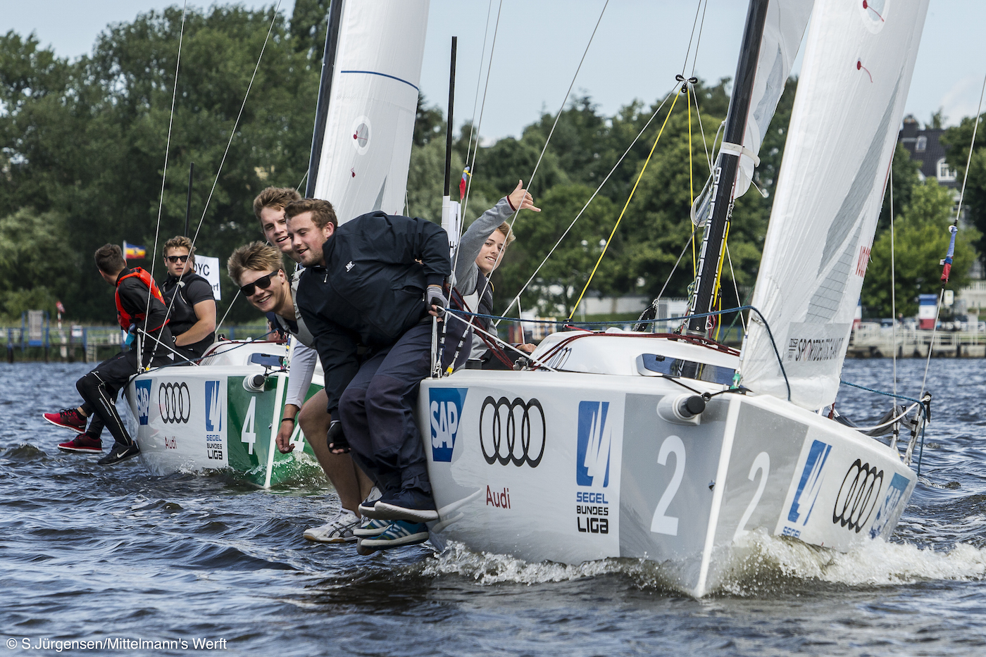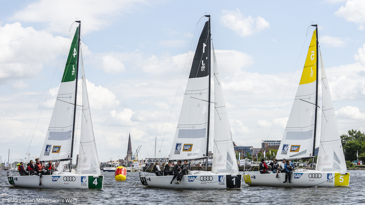 Auch die zweite Veranstaltung der Deutschen Junioren Segel-Liga im Rostocker Segelstadion (02. bis 04. Juli im Rahmen der Warnemünder Woche) war ein riesen Erfolg. Nach drei Tagen Segeln vor Publikum gepaart mit Euphorie und Freude pur steht der Gewinner fest: Der Württembergische Yacht-Club. Punktgleich auf Platz zwei liegt der Düsseldorfer Yachtclub. Beide Mannschaften sicherte sich damit die Teilnahme am Finale der Junioren Segel-Liga Ende Oktober in Hamburg. Platz drei belegt der Bayerische Yacht-Club. Der Nachwuchs ist nicht aufzuhalten, so viel steht fest.