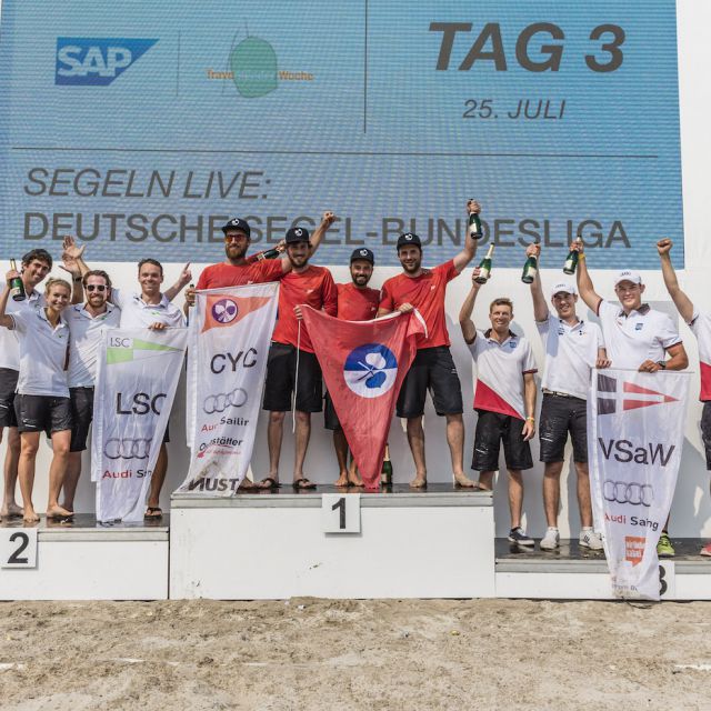 Ein Wochenende mit Hochspannung und spektakulären Bildern im Segel-TV, das war die Deutsche Segel-Bundesliga in Travemünde 2016. Der Kampf um die Tabellenspitze endet mit einem Punktegleichstand der ersten drei Ränge. Tutzing, Lindau und Berlin stehen punktgleich ganz oben. Damit kann der Deutsche Touring Yacht-Club die Spitze zwar halten, steht aber auf einem wackeligen Podest. Sieger in Travemünde wird der Chiemsee Yacht-Club, souverän vor dem Lindauer Segler Club und dem Verein Seglerhaus am Wannsee. In der 2. Segel-Bundesliga triumphiert die Seglervereinigung 1903 Berlin mit Spitzenleistungen. Dahinter folgt ein starker Mühlenberger Segelclub und die Segelkameradschaft „Wappen von Bremen“.