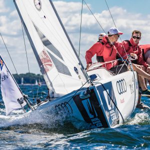 Platz zwei in Kiel belegt die Segelkameradschaft „Das Wappen von Bremen“ (Gordon Nickel, Thomas Dehler, Klaas Simon, Morten Nickel) mit 39,6 Punkten. Morten Nickel: „Wir hatten hier auf der Kieler Förde bei viel Wind auf einen Podiumsplatz gehofft. Dass wird es jetzt auch bei Schwachwind auf den zweiten Platz geschafft haben, ist für uns eine große Überraschung.“