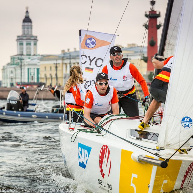 Bei drehenden, schwachen bis mäßigen Winden kam das Team vom NRV am besten mit den anspruchsvollen Bedingungen auf der Neva im Zentrum von St. Petersburg zurecht:  Am Sonntag gewannen die Hamburger souverän drei der vier Wettfahrten und konnten damit an die guten Platzierungen der Vortage anknüpfen. Sie sichern sich einen der Startplätze für das große Finale der SCL in Porto Cervo (Ende September).