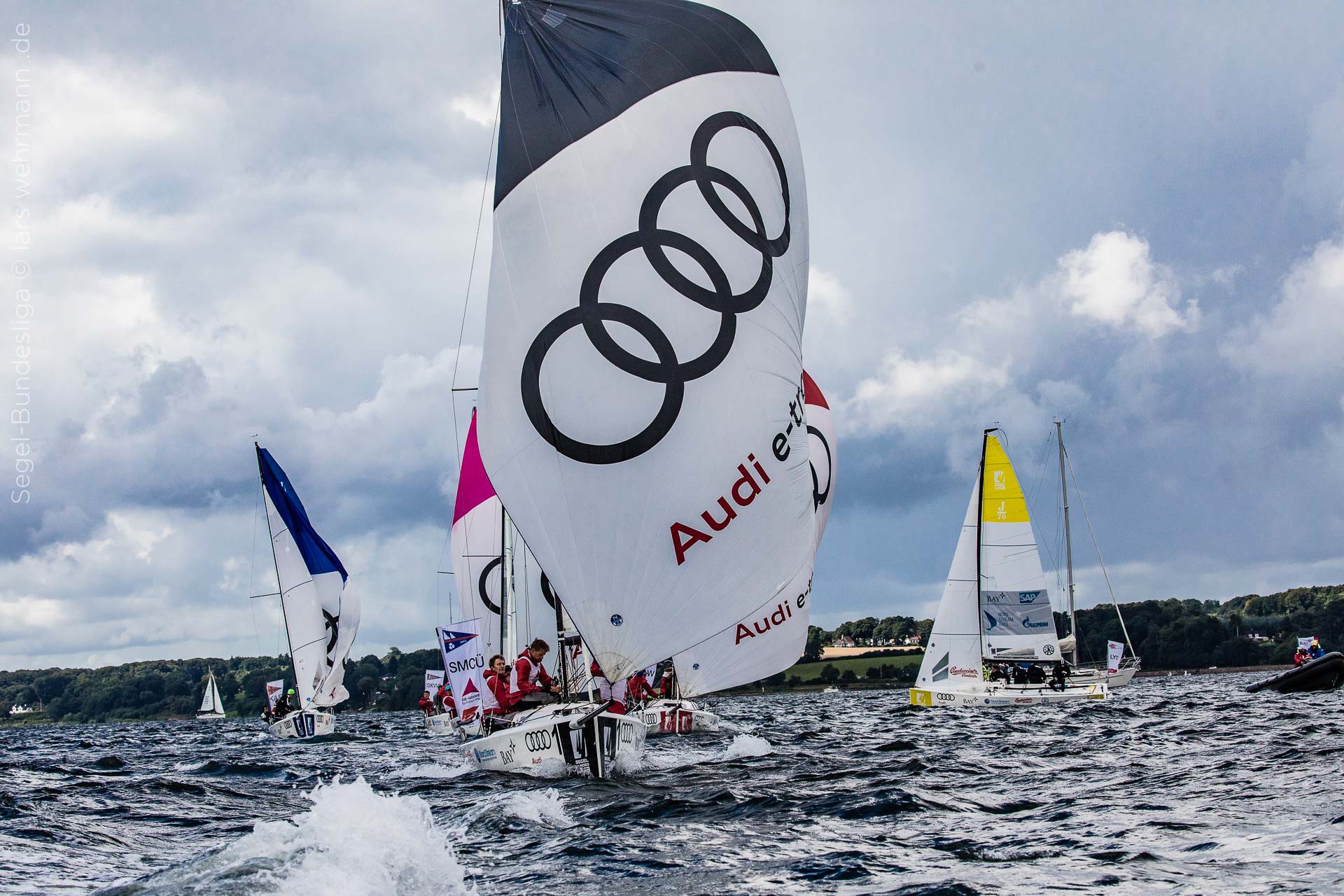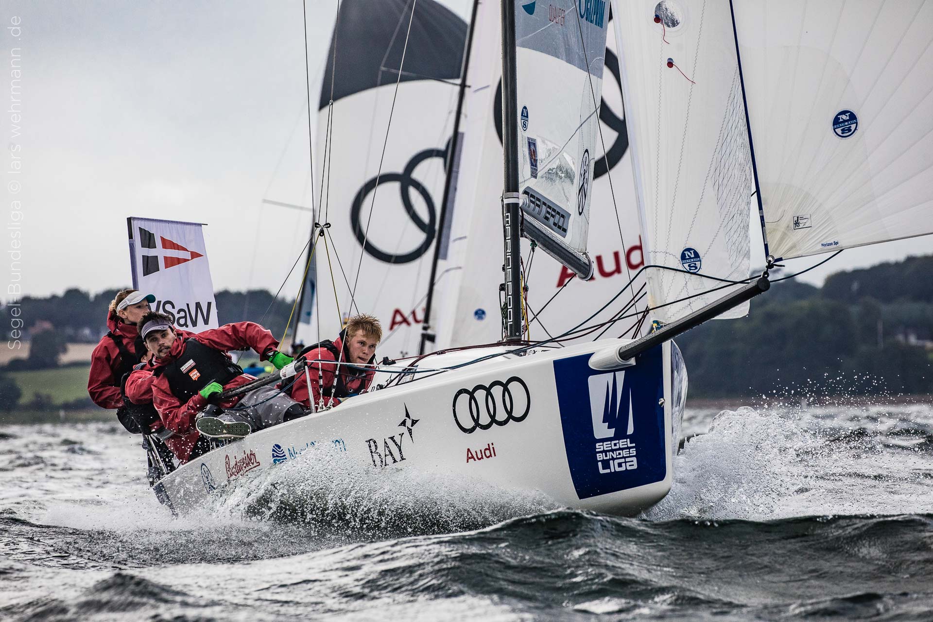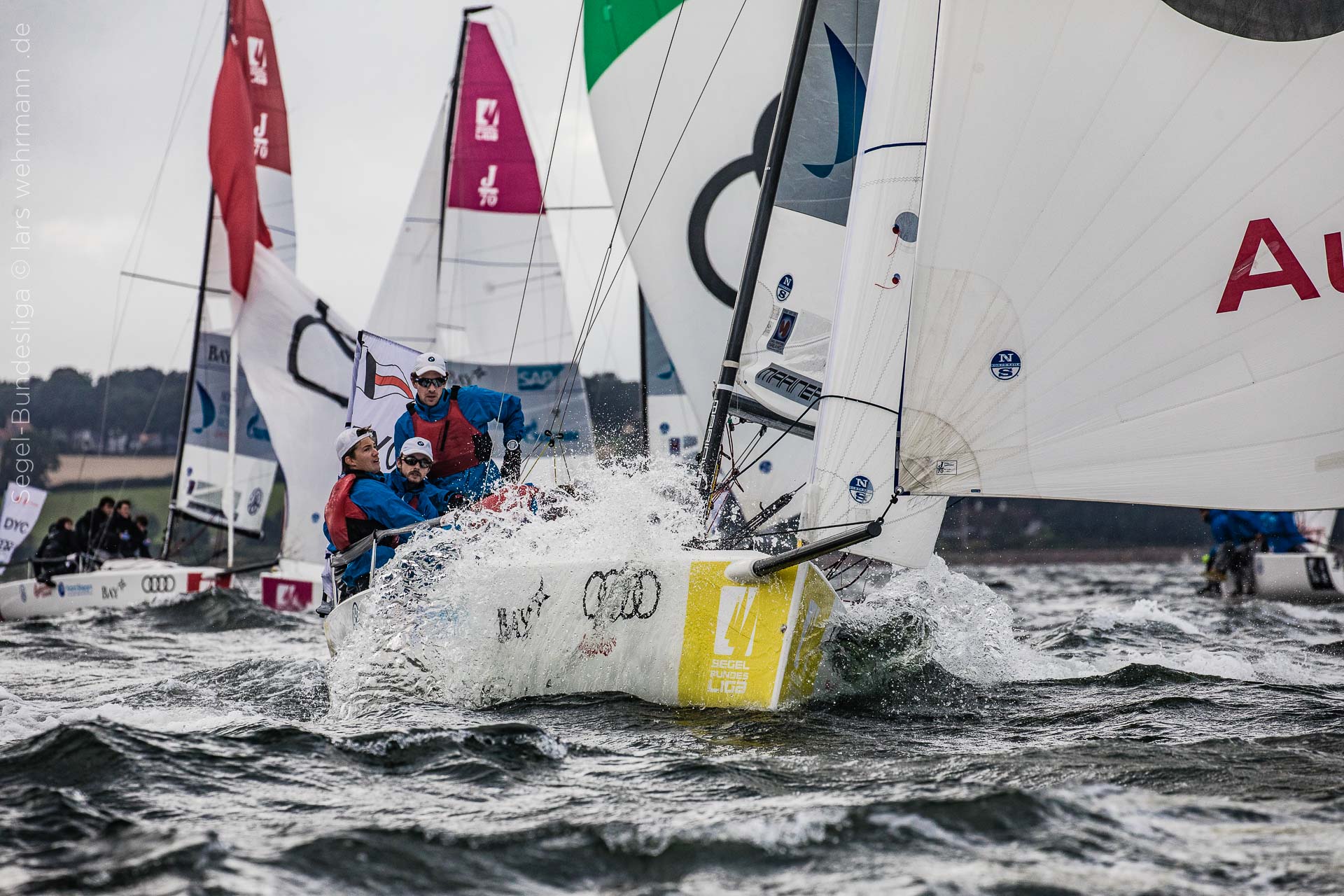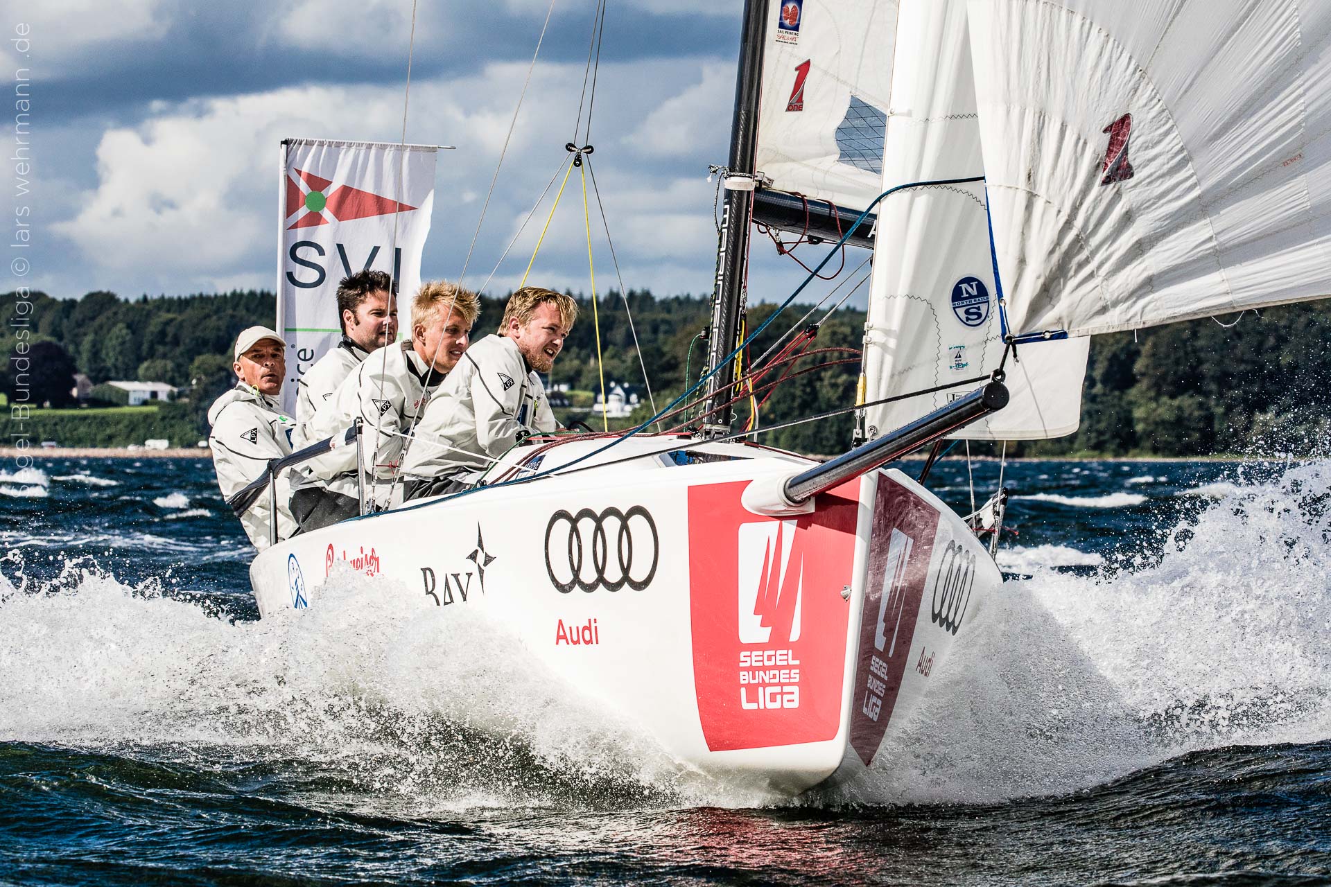 In der 1. Segel-Bundesliga beendete das Team vom Verein Seglerhaus am Wannsee das Event in Glücksburg als Sieger. Platz zwei und drei belegten der Norddeutsche Regatta Verein (NRV) und der Deutsche Touring Yacht-Club (DTYC). Vor dem großen Finale führt der DTYC die Gesamttabelle weiter vor dem NRV und dem Segel- und Motorboot Club Überlingen an. Das Team aus Bayern hat damit weiterhin die Chance den Meistertitel zu verteidigen. Das Finale der 1. Segel-Bundesliga findet vom 01. bis 03. November in Berlin statt.