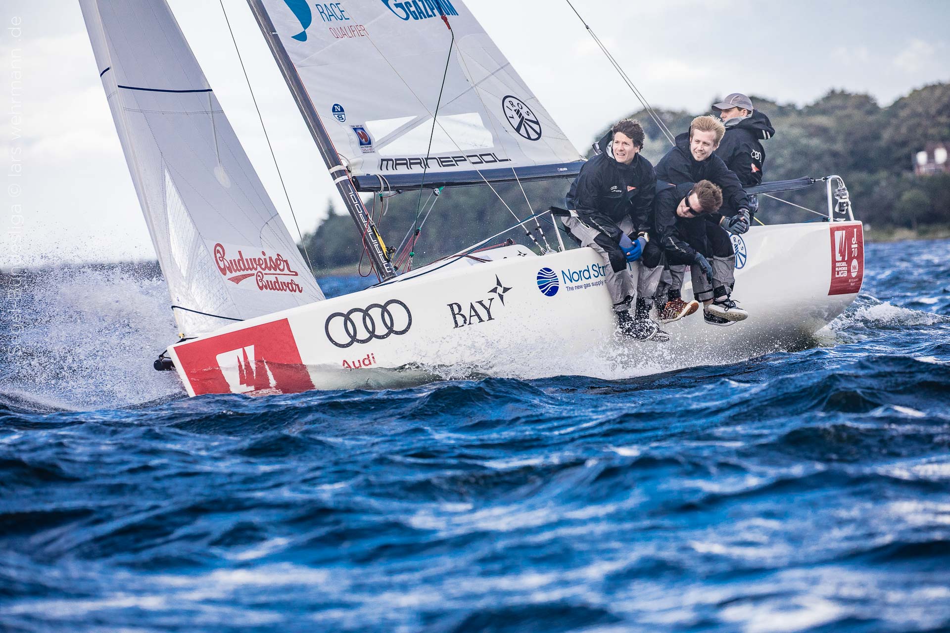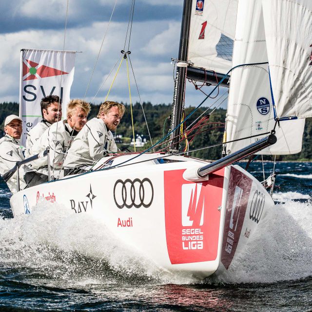 „Unser Ziel war es, keines der Events schlechter als mit dem fünften Platz abzuschließen. Das ist uns gelungen! Damit stehen wir an der Tabellenspitze und sind total glücklich über den Aufstieg zurück in die 1. Liga“, freut sich Christian Soyka, Steuermann der Segler Vereinigung Itzehoe. Moritz Burmester, Ole Harder und Oliver Lewin vervollständigten das Team in Glücksburg, sie gewinnen die 2. Segel-Bundesliga 2017.