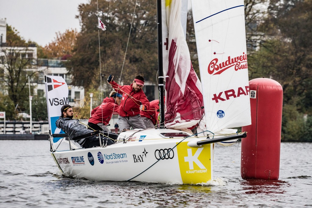 „Das Event hier in Hamburg als auch die gesamte Saison war nervenzerreißend und jedes Mal wieder ein harter Fight. Es kann alles passieren und daher war es bis zur letzten Sekunde spannend. Aber genau das ist das Besondere an der Liga. Am Ende ist es optimal für uns gelaufen und wir sind super happy und zufrieden“, erklärt Tobias Schadewaldt (Steuermann) erleichtert, der gemeinsam mit Johann Kohlhoff, Klaas Höpcke und Malte Päsler beim Finale der 1. Segel-Bundesliga auf der Hamburger Außenalster den NRV vertrat. Bei der Übergabe der Meisterschale am späten Nachmittag war die Freude bei der gesamten Bundesligamannschaft des NRV grenzenlos. Mit der Titelverteidigung qualifiziert sich der NRV erneut für das Nord Stream Race 2019, die Langstreckenregatta durch die Ostsee von Kiel nach St. Petersburg.