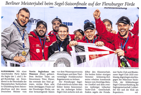 • Flensburger Tageblatt, 21. Oktober 2019: „Berliner Meisterjubel beim Segel-Saisonfinale auf der Flensburger Förde“