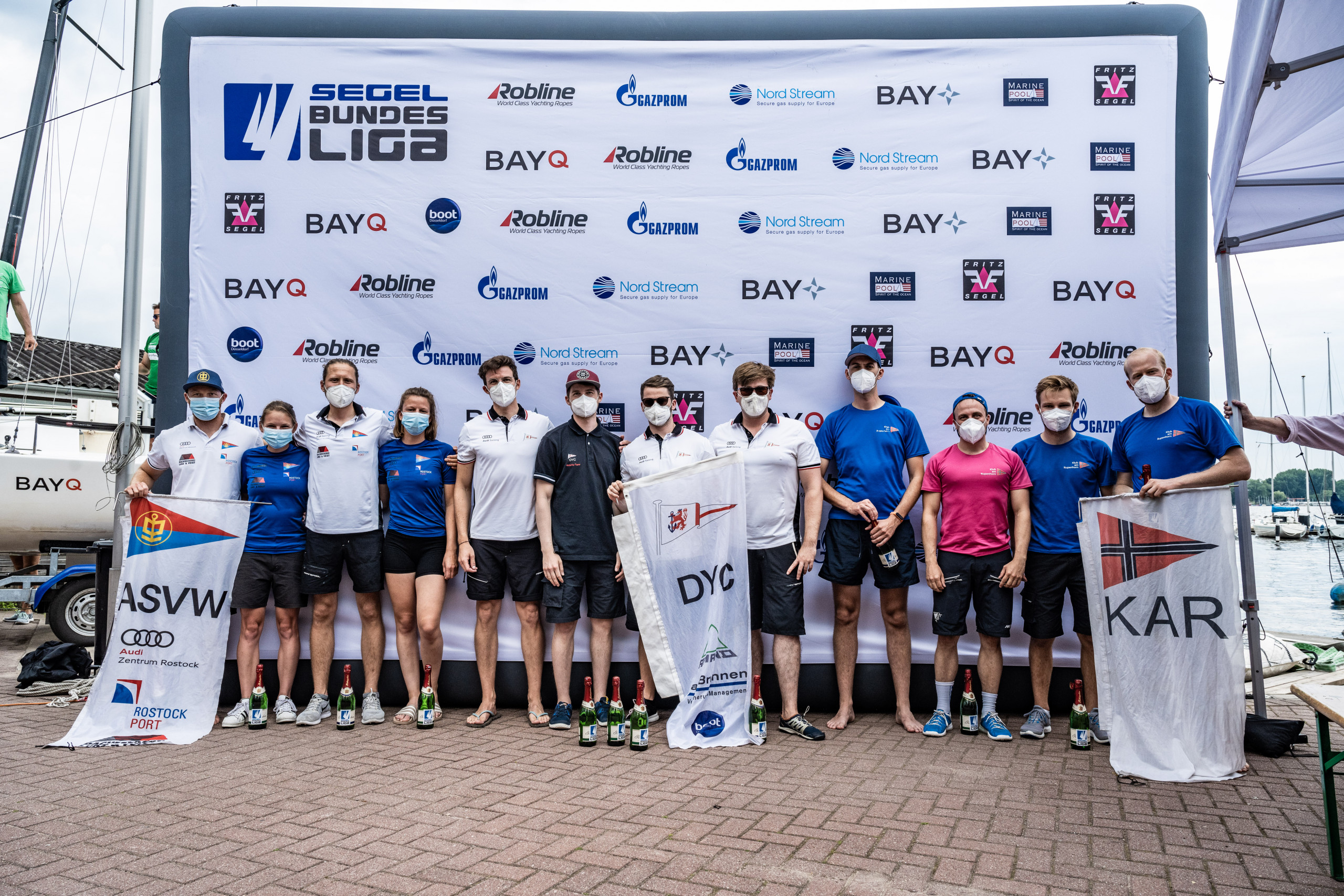 Nach 15 Wettfahrten für jeden Verein sichert sich der Düsseldorfer Yachtclub den Sieg und übernimmt damit die Tabellenführung in der 2. Segel-Bundesliga. „Wir sind mit wenig Erwartungen angereist. Wir wollten erstmal sehen, wo wir uns einordnen. Ich glaube, unser befreiter Kopf war der Schlüssel zum Sieg hier in Hamburg. Wir wussten im letzten Rennen, dass wir den Potsdamer Yacht Club nicht aus den Augen verlieren durften, weil sie uns den Sieg noch streitig machen konnten. Wir sind natürlich super glücklich, dass wir am Ende trotz Foto-Finish vorne lagen“, freut sich Steuermann Julius Schrader, der mit seinem Bruder Philipp Schrader, Alexander Swade und Patrick Treichel in Hamburg segelte.